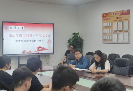 5月28日下午,太阳成集团tyc9728工科第一学生党支部在党员会议室开展“青春向党、不负韶华”党史学习读书分享会,会议由工科第一学生党支部书记王璇主持,太阳成集团tyc9728党委书记阳剑兰出席,支部全体学生党员参加会议。