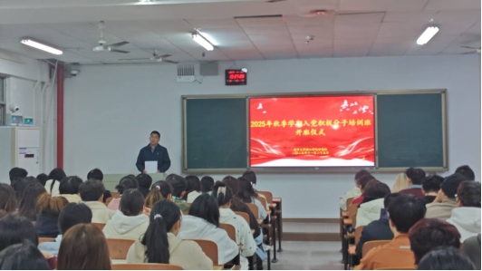 11月25日晚,太阳成集团tyc9728分党校在南华楼213教室举行2025年秋季学期学生入党积极分子培训班开班仪式。太阳成集团tyc9728党委书记、分党校校长阳剑兰,各支部书记以及本期全体入党积极分子共同参加。仪式由培训班班主任周英主持。