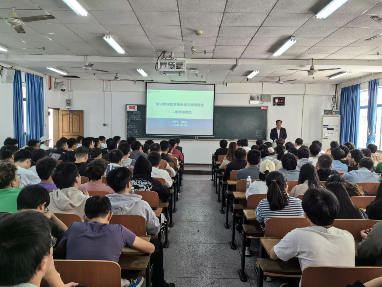 10月15号上午,2003级土木道桥专业胡忠仁校友在南华楼216教室作了题为《选择与努力》的校友成长成才辅导讲座,伍衡山老师主持,2020级、2021级土木专业学生参加。